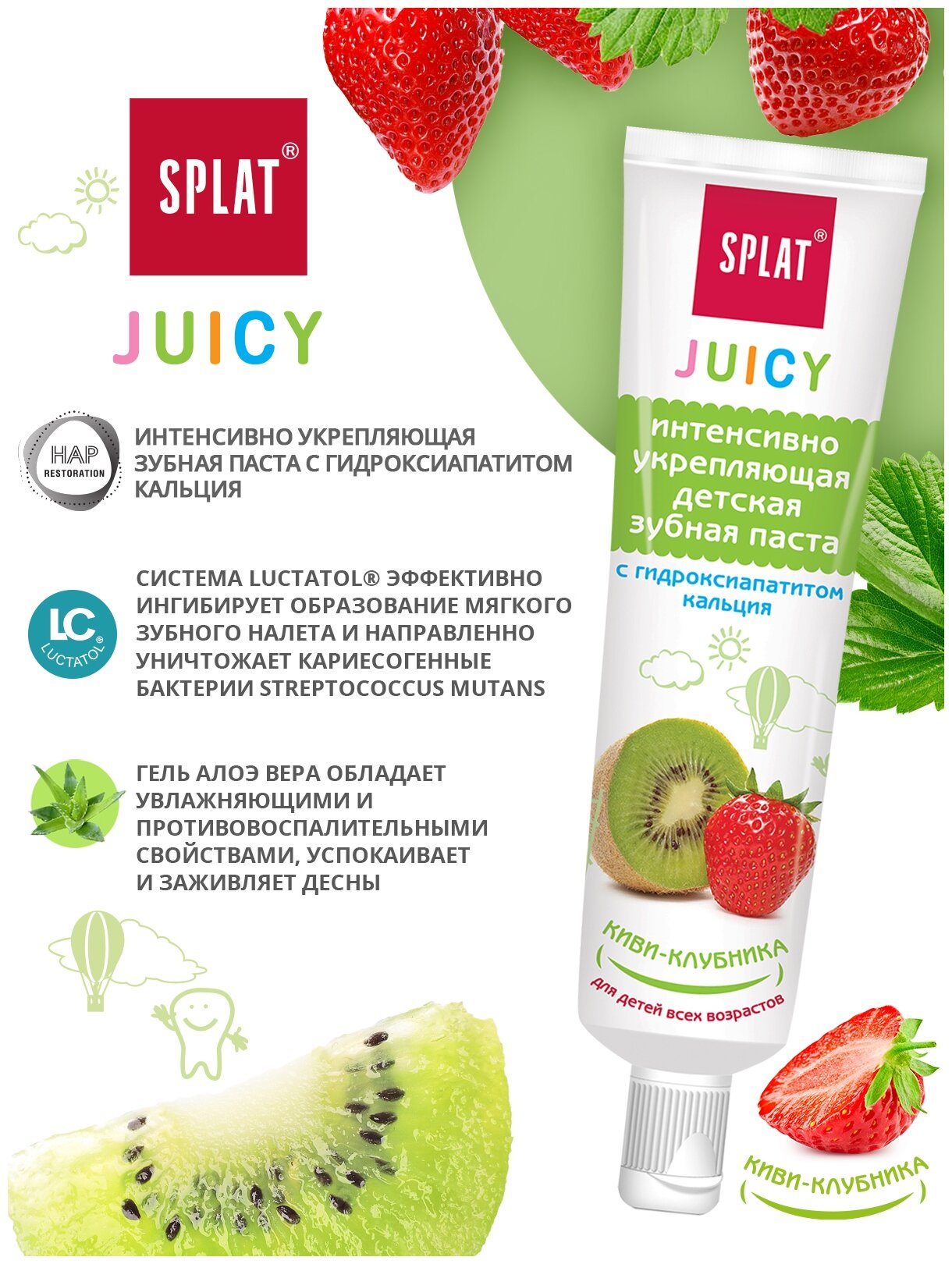 SPLAT Juicy Детская укрепляющая зубная паста с гидроксиапатитом киви-клубника 35 мл. информация: