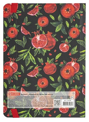 Блокнот Brauberg с резинкой в клетку 96 листов, А5 145х203 мм, "Гранаты" (113730)