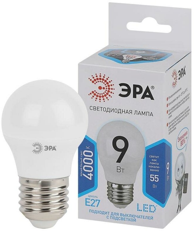 Отзывы на Лампа Светодиодная Эра Led P45-9W-840-E27 (Диод, Шар, 9Вт, Нейтр, E27) ЭРА арт. Б0029044