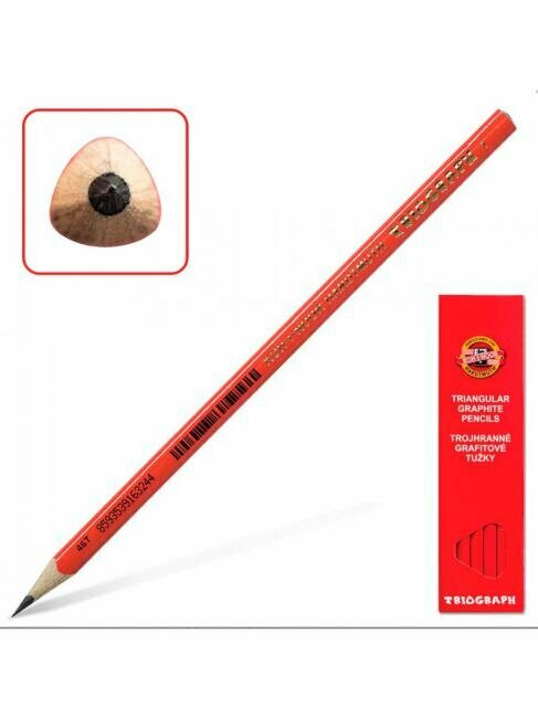 10 цен на Карандаш ч/г Koh-I-Noor "Triograph 1" мягкий, красный корпус, трехгран., заточен.
