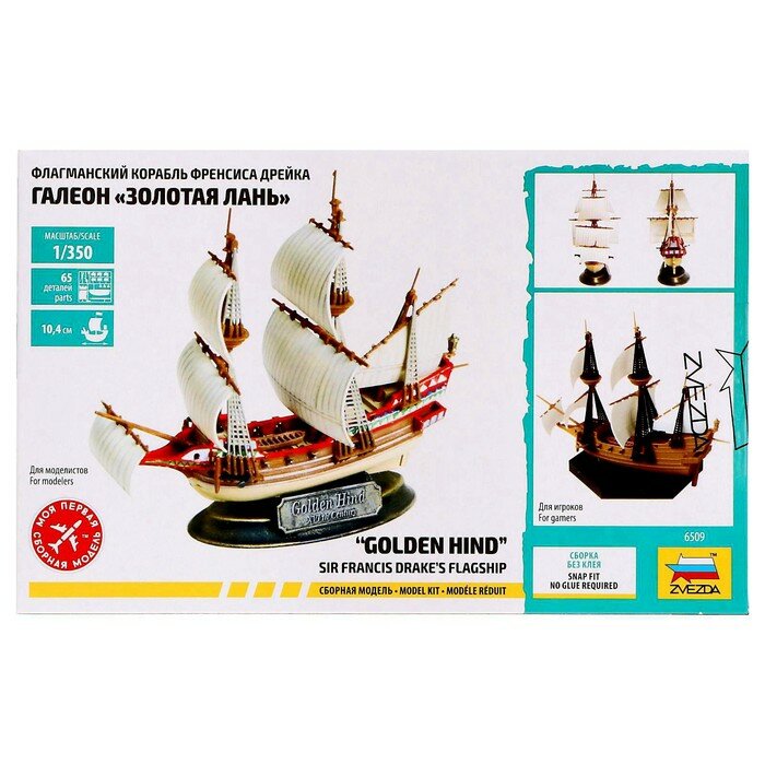 Сборная модель «Флагманский корабль Френсиса Дрейка «Галеон Золотая Лань», Звезда, 1:350, (6509)
