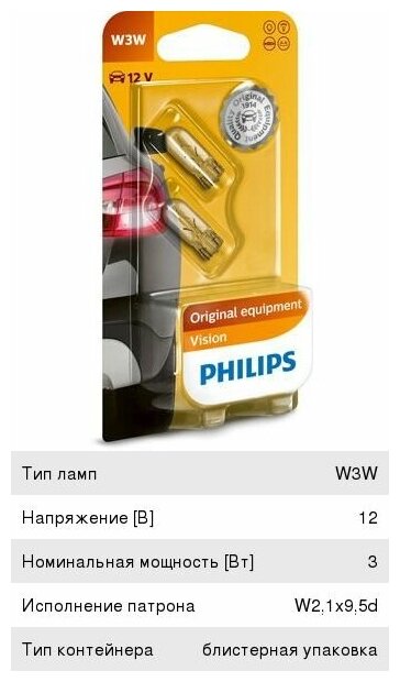 Отзывы на PHILIPS 12256B2 Лампа 12V W3W W2.1x9.5d блистер (2шт.) PHILIPS