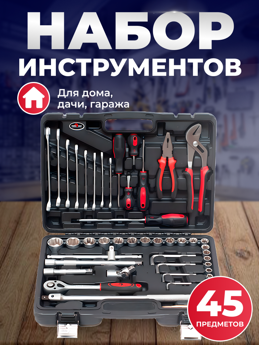 0 отзывов, средняя оценка 0. Чтобы купить «Набор инструментов ( 45 предметов)» по лучшей цене мы сканируем авито, алиэкспресс, маркет, озон, савеловский, плеер, горбушку, беру, официальные сайты и находим минимальную. Администрация не несет ответсвенность актуальность цен на Набор инструментов ( 45 предметов), более подробно узнавайте на сайте магазина.