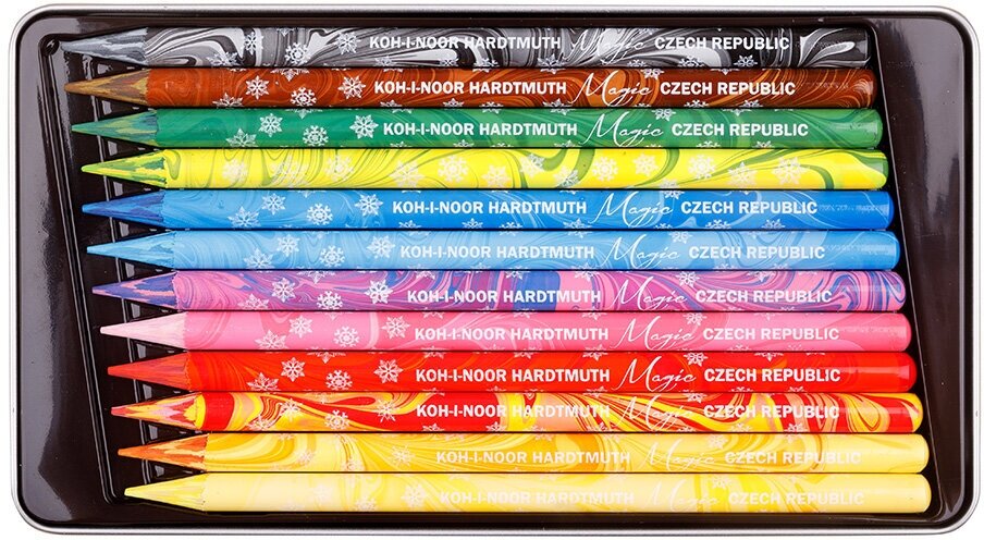 Карандаши с многоцветным грифелем цельнографитные Koh-I-Noor "Progresso Magic 8772", 12шт., заточен., в лаке, металл. коробка