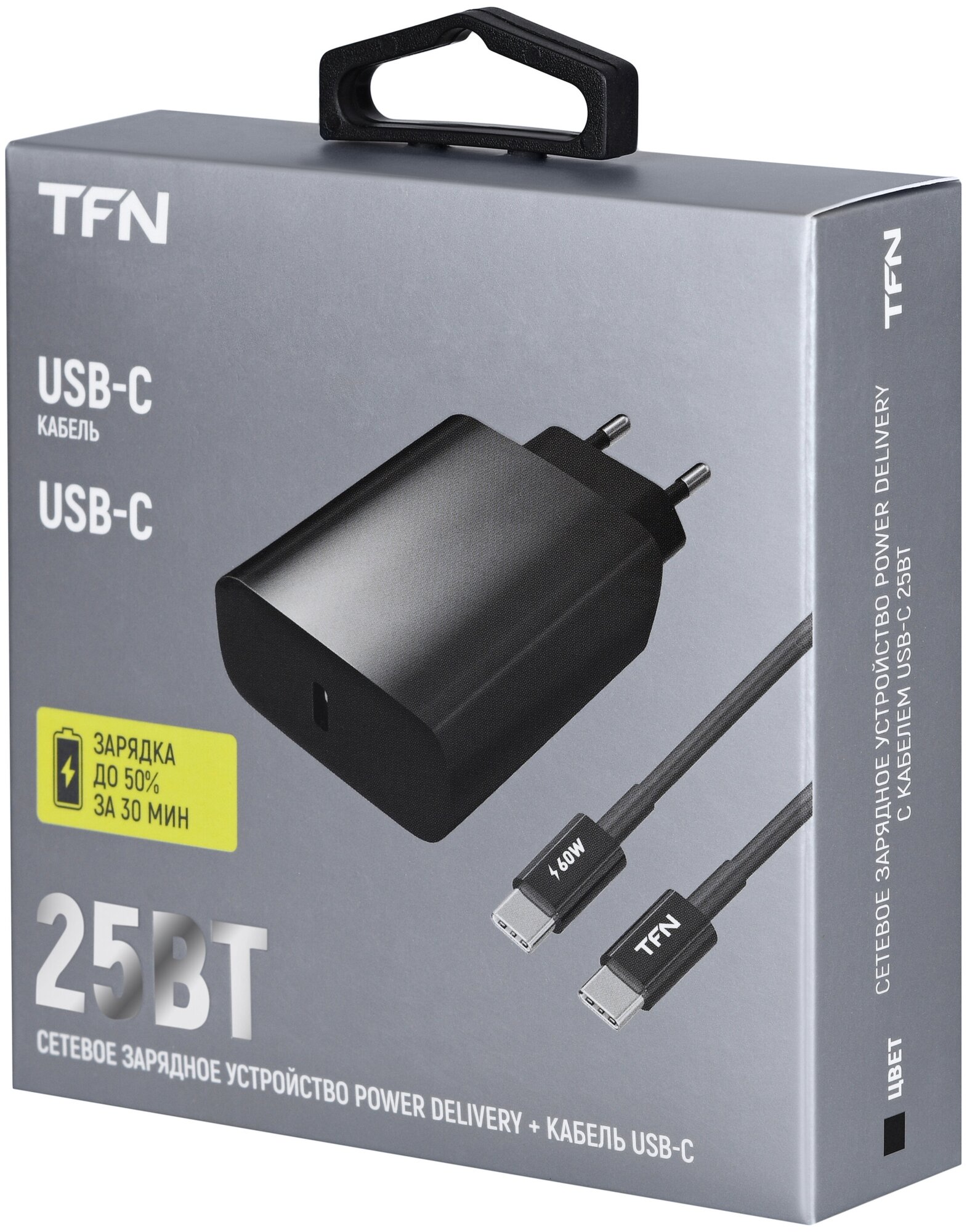 Сетевое зарядное устройство TFN Type-C, Power Delivery, 25Вт + кабель Type-C black (Черный)