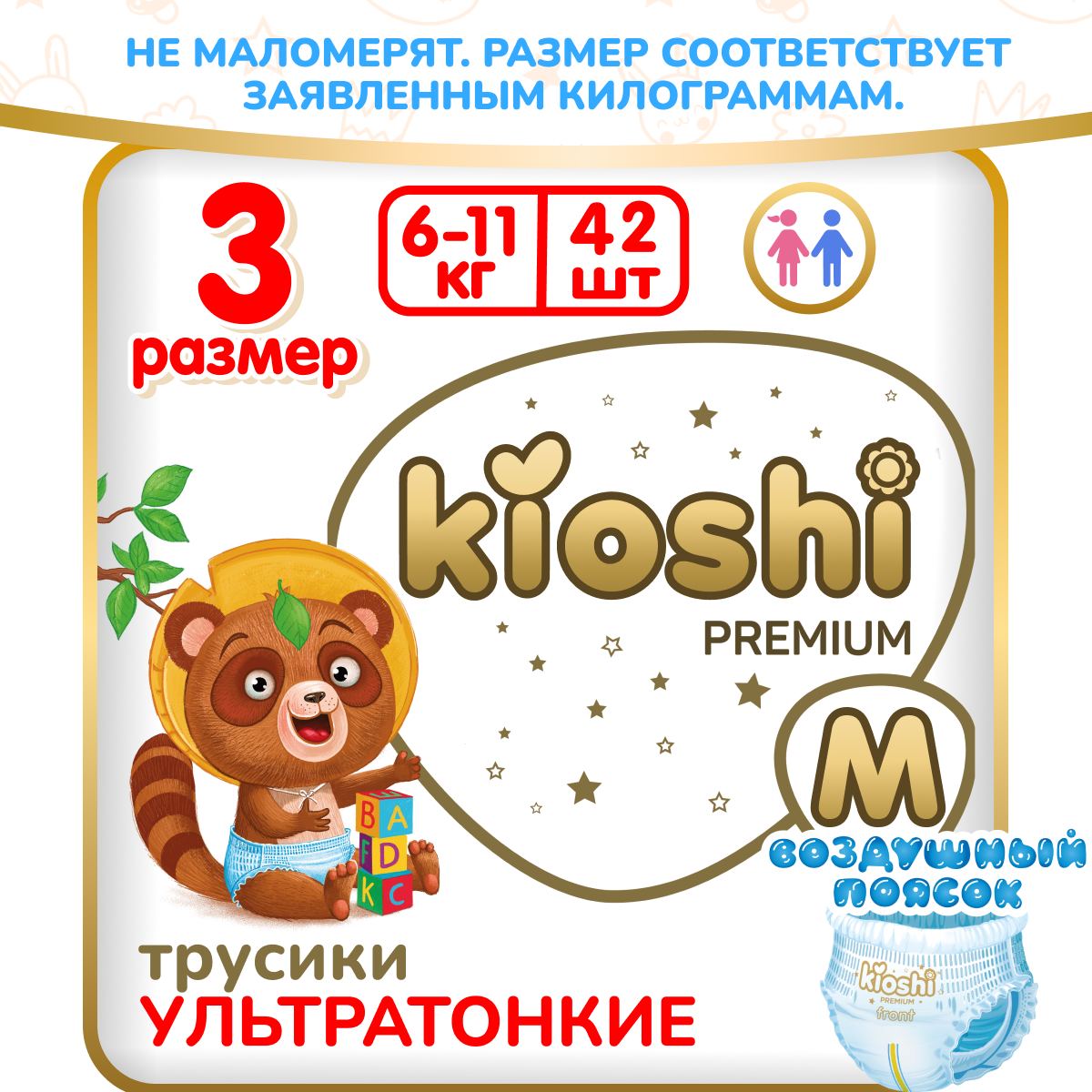 Подгузники-трусики KIOSHI PREMIUM , Ультратонкие, M 6-11 кг, 42 шт информация: