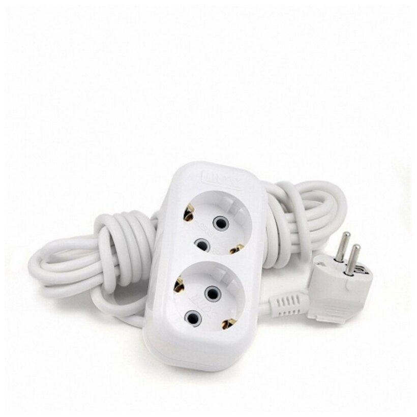 Удлинитель LUX У2-О, 2 розетки, б/з, 10А / 2200 Вт белый 2 м 0.75 м² 2