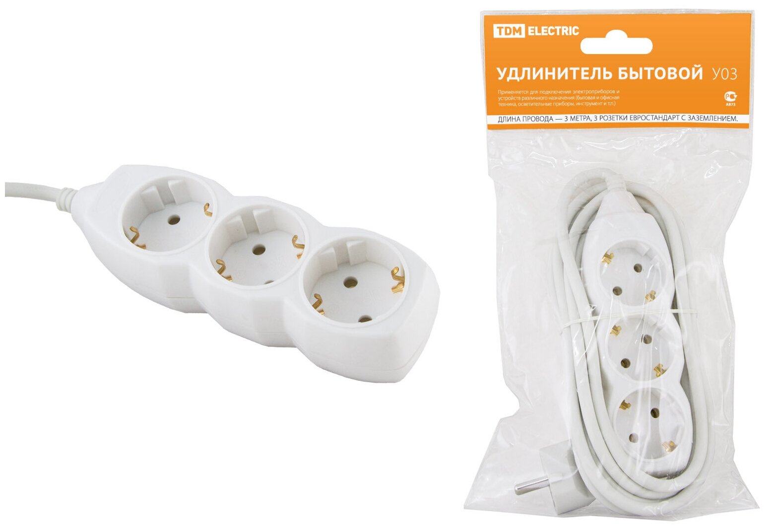 Удлинитель TDM ELECTRIC УЛ03 (SQ1303-0232), 3 розетки, с/з, 16А / 3500 Вт