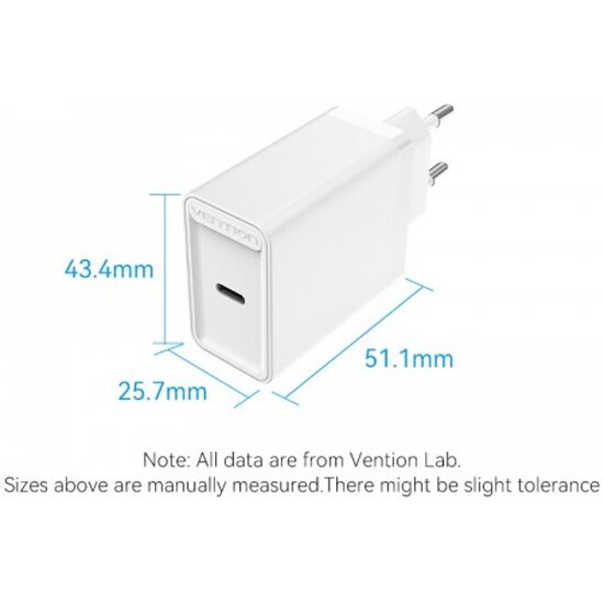 Сетевое зарядное устройство Vention на 1 порт USB C QC 4.0 Белый информация: