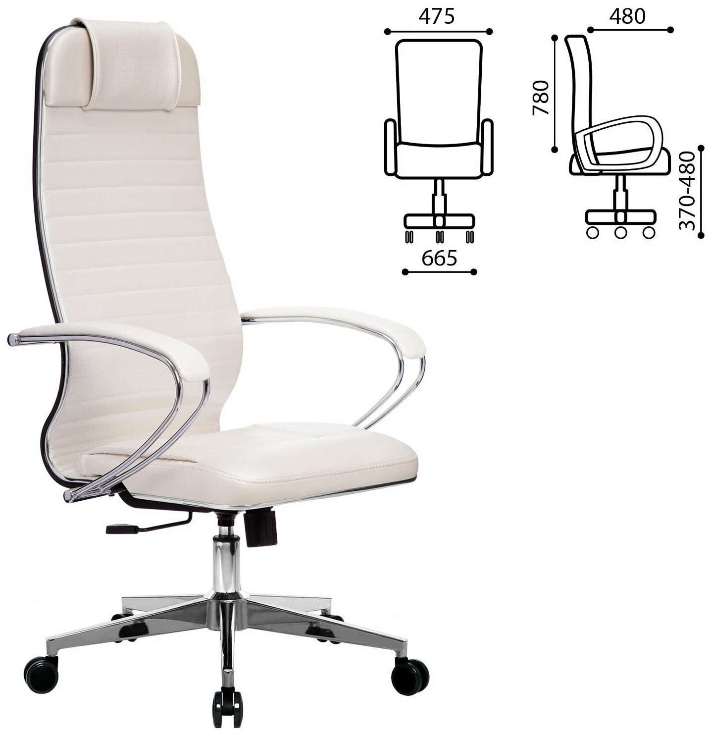 Кресло офисное Метта "К-6" хром, рецик, кожа, сиденье и спинка мягкие, белое информация: