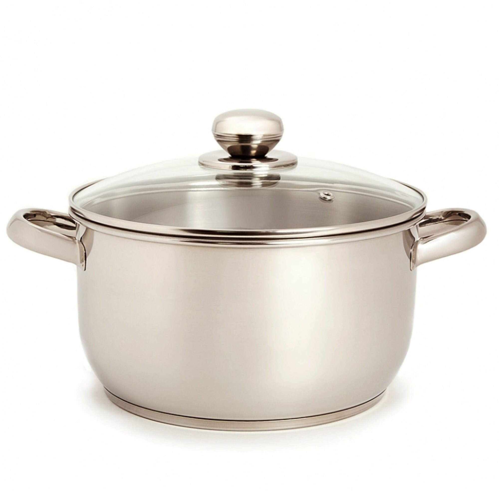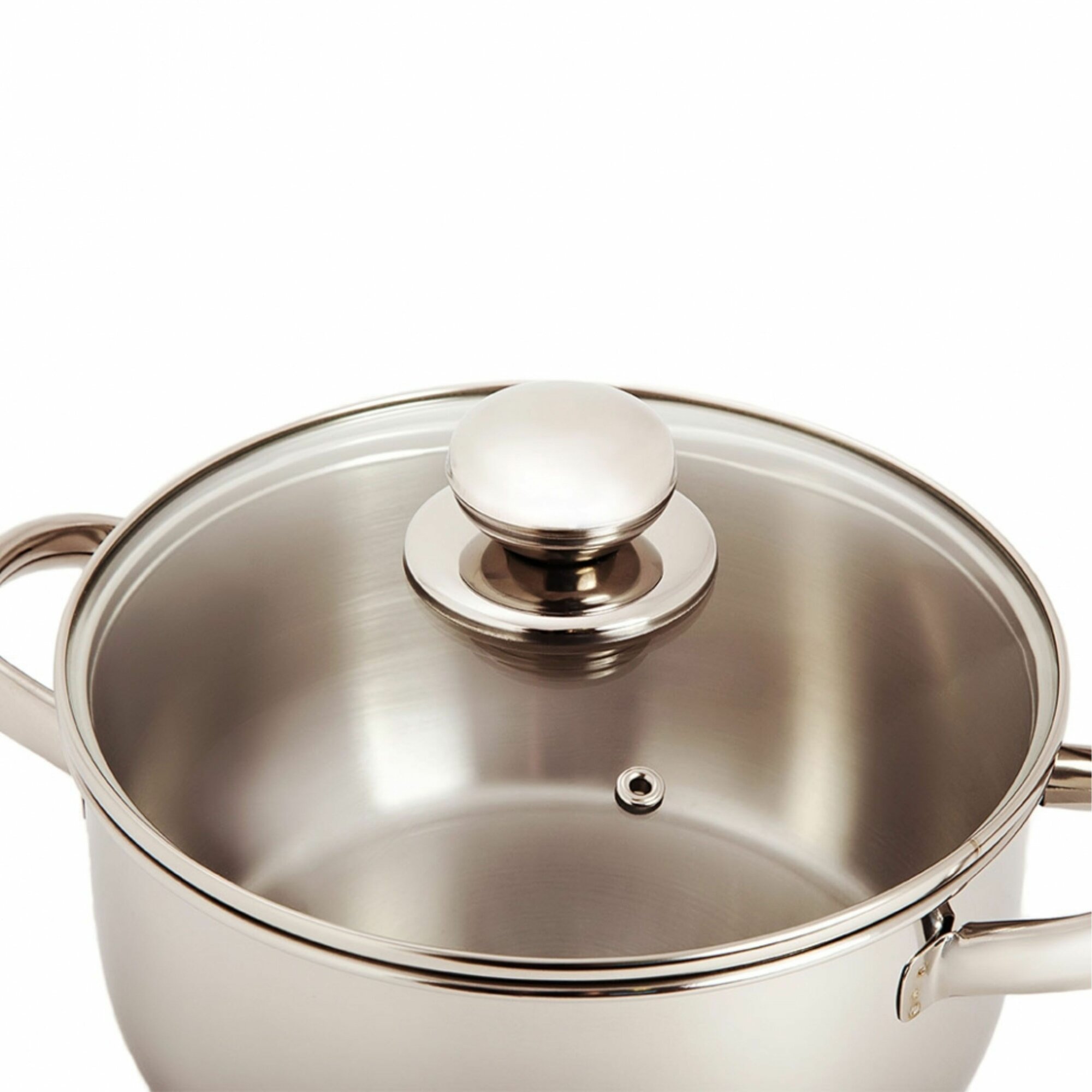 Кастрюля из нержавеющей стали Амет Классика-Прима со стеклянной крышкой и объемными ручками 4л / посуда для газовых и электрических плит