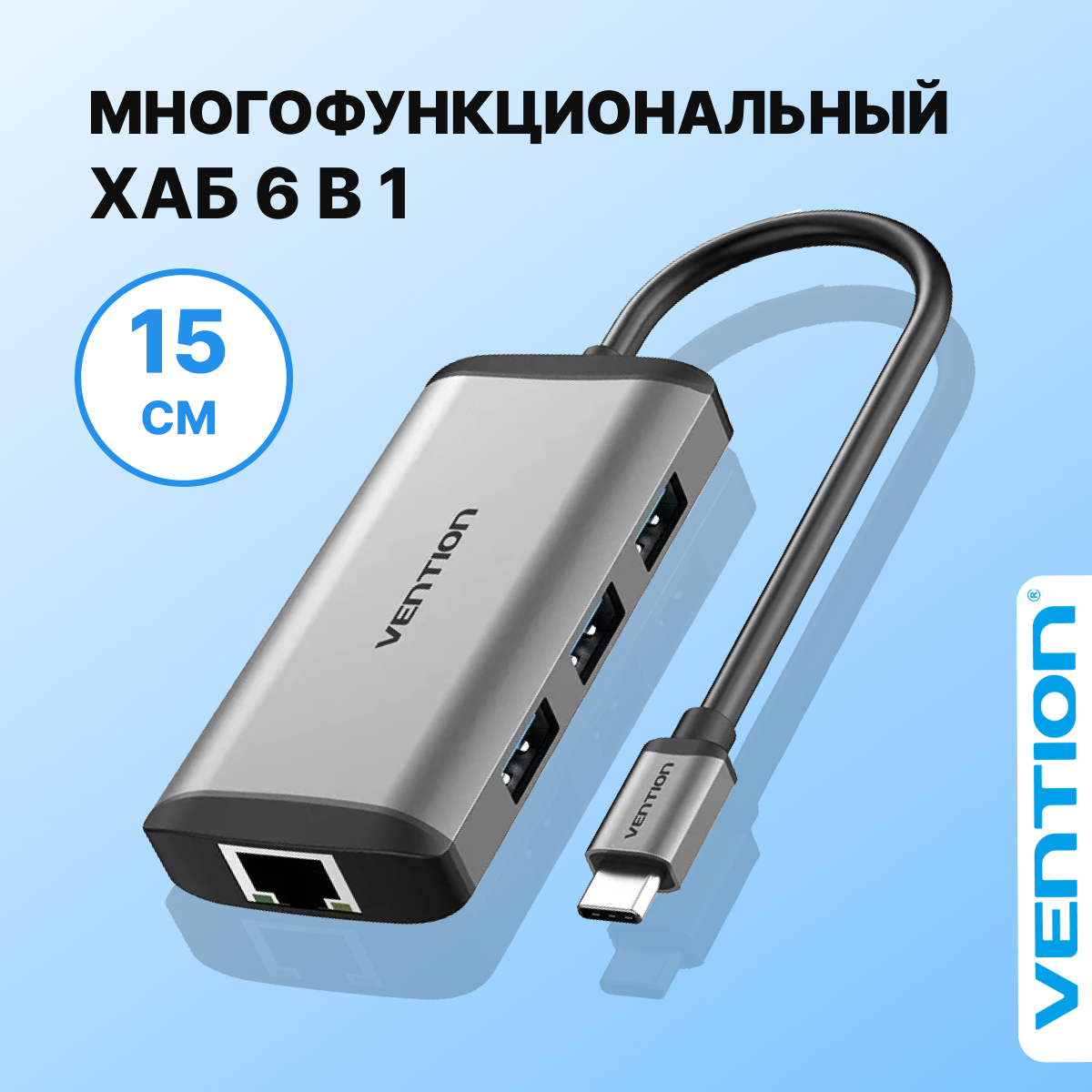 Отзывы на Vention Мультифункциональный хаб 6 в 1 USB Type C, сплиттер, переходник, зарядка для телефона