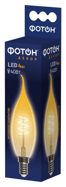 лампа филаментная фотон LED серия Декор BXS35-S 4Вт E14 2200К свеча на ветру