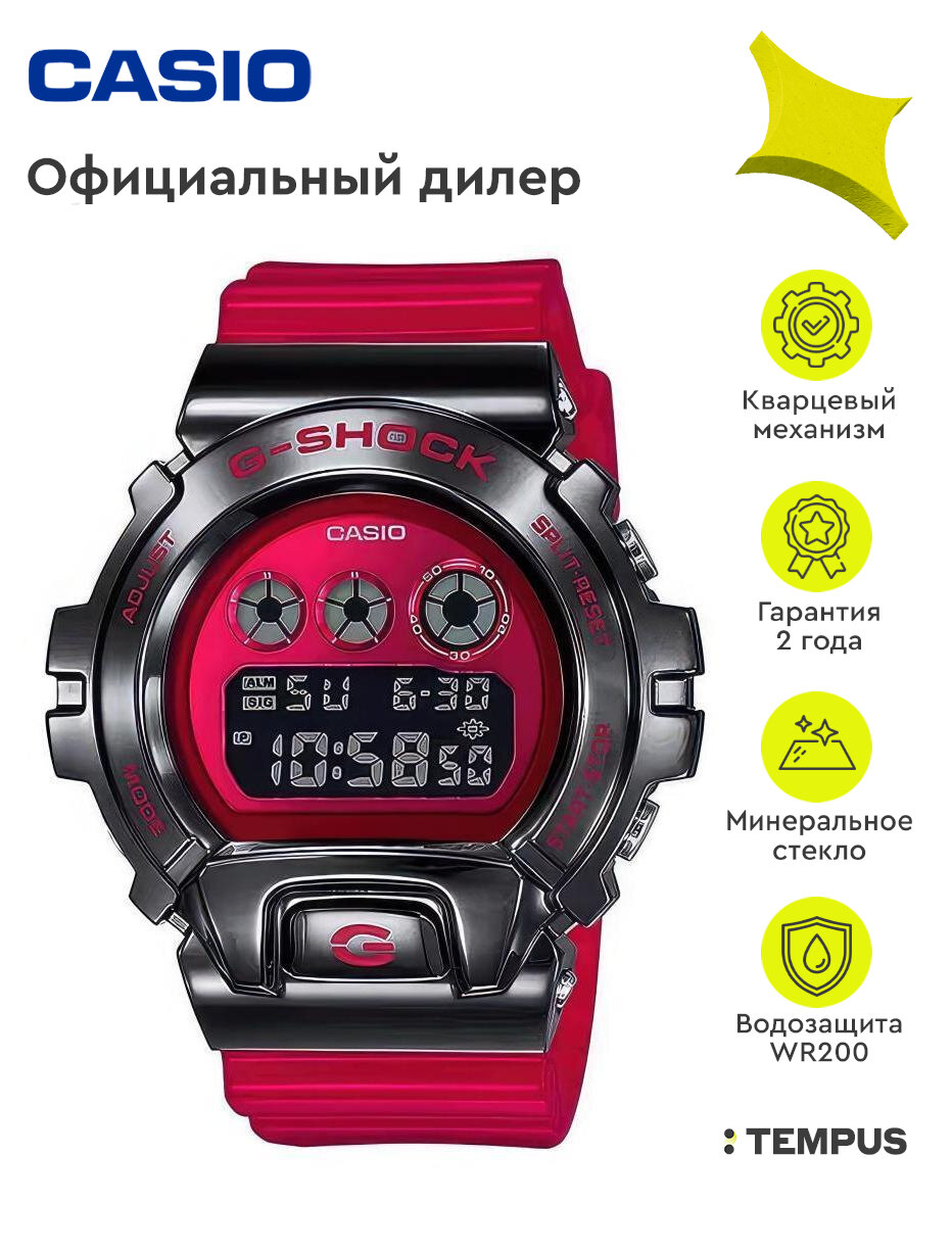 Наручные часы CASIO G-Shock GM-6900B-4 мужские, кварцевые, будильник, секундомер, таймер обратного отсчета, водонепроницаемые, противоударные, подсветка дисплея, красный