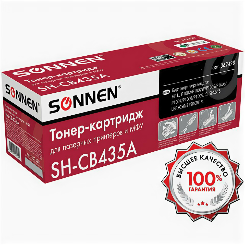 Картридж лазерный SONNEN (SH-CB435A) для HP LaserJet P1002/02W/05/06/07/08/09, высшее качество, ресурс 1500 стр., 362428 В комплекте: 1шт.