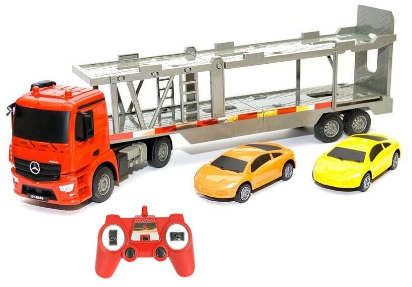 Радиоуправляемый автовоз Double E Mercedez-Benz Antos Car Transporter с 2 автомобилями - E585-003 информация: