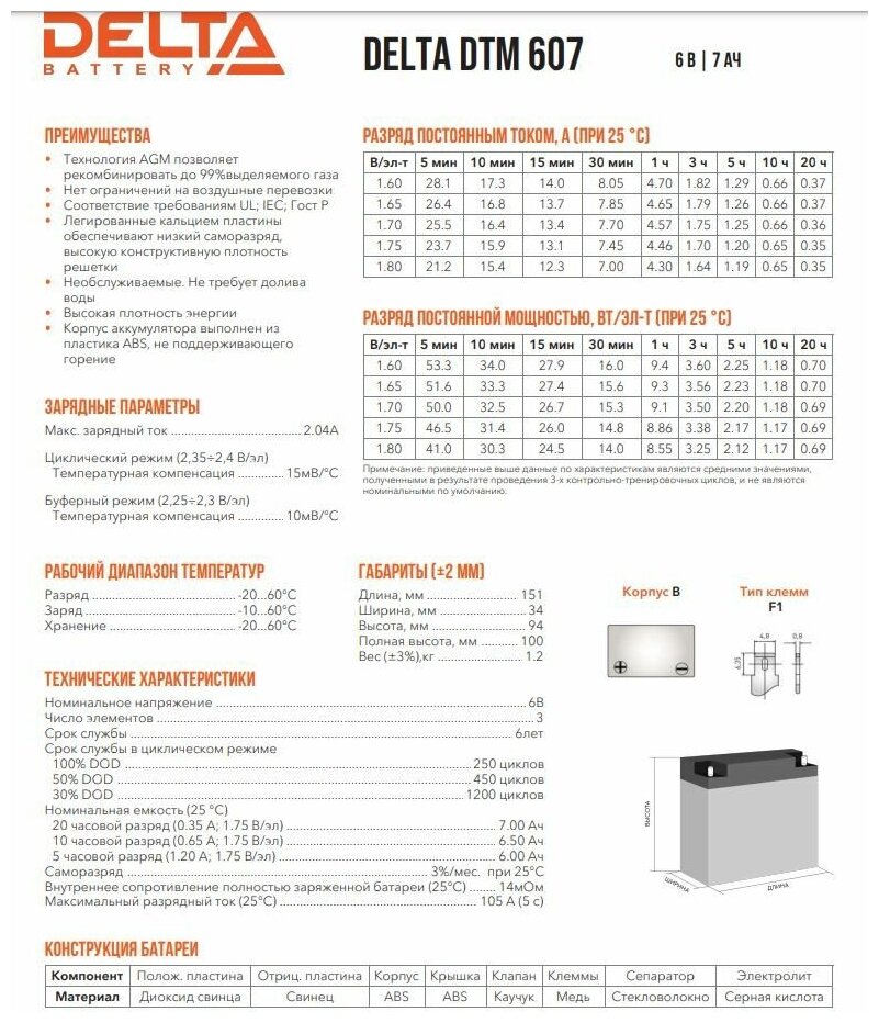 Аккумулятор Delta DTM 6V 7Ah информация: