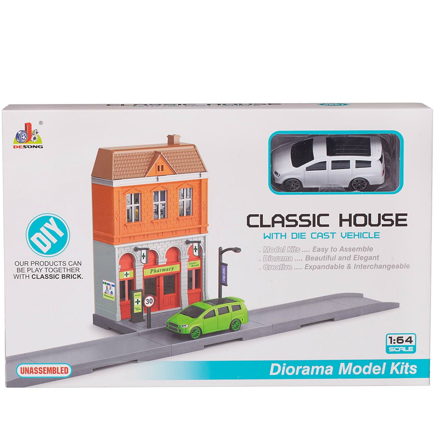 Конструктор JUNFA Городская улица Аптека с металлической машинкой 1:64 информация: