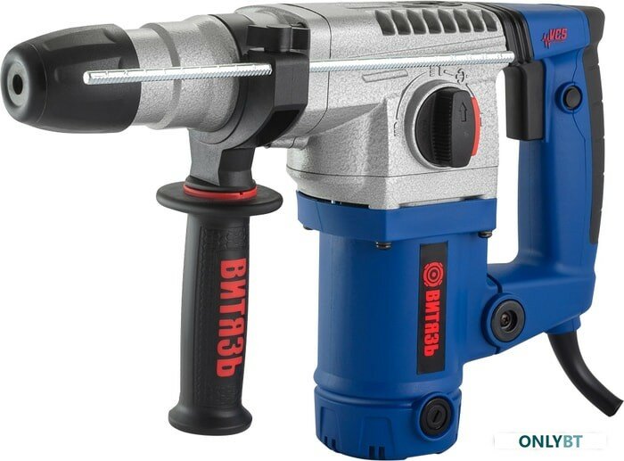 Перфоратор Витязь ПЭ-1200, 230 В /50 Гц, 1200 Вт, 4.4 Дж, 850 об/мин, 0-4100 уд./мин, SDS-Plus, вертикальное расположение двигателя, низкий уровень вибрации