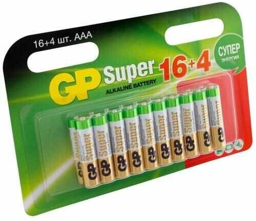 Батарейки алкалиновые (щелочные) GP Super Alkaline LR03 AAA, 20 шт