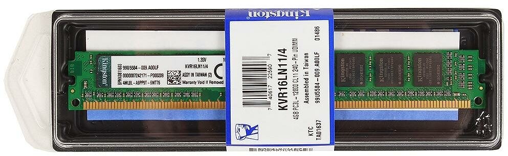 Оперативная память Kingston ValueRAM 4 ГБ DDR3L 1600 МГц DIMM CL11 KVR16LN11/4 1 490 ₽