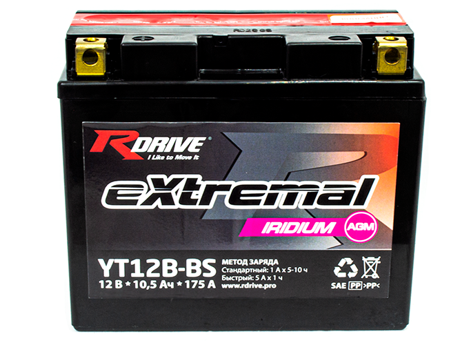 АКБ 10Ач "RDrive eXtremal IRIDIUM AGM YT12B-BS" П.П. 151х70х130 , информация: