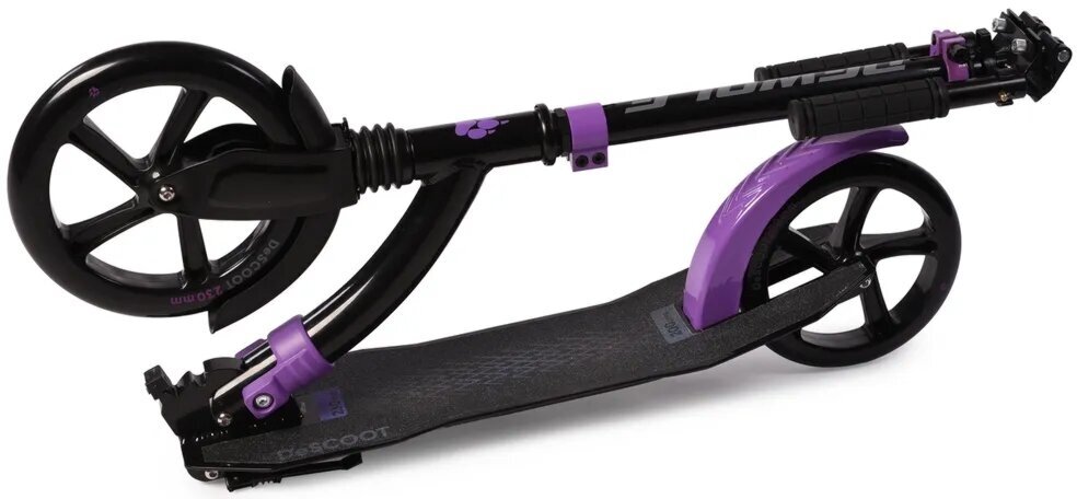 Самокат двухколесный городской DEWOLF DESCOOT 230, с амортизацией, складной, регулируемый руль, колеса 200 мм, для детей подростков и взрослых, цвет фиолетовый
