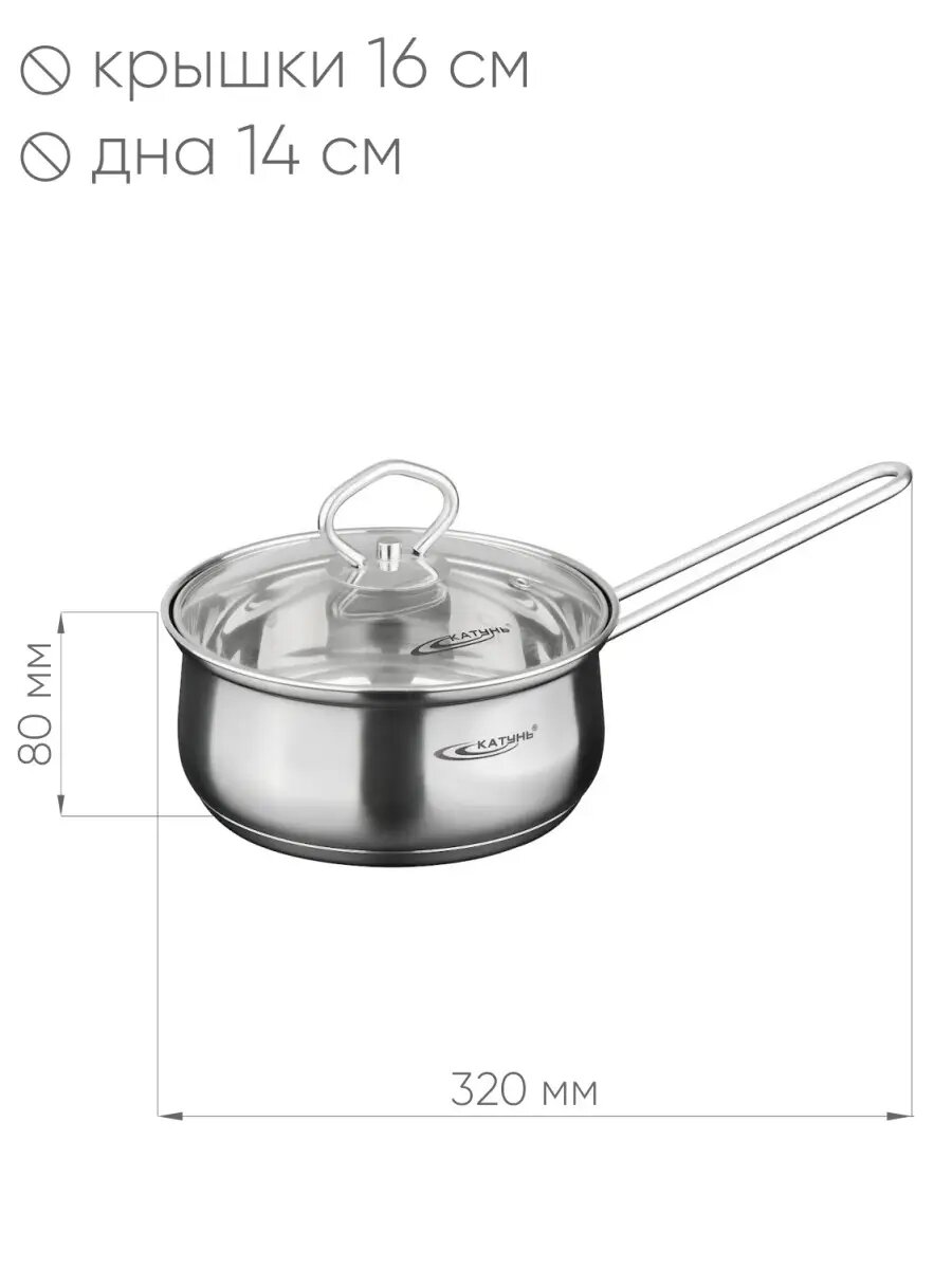 Ковш Катунь Лира 1,6л 16см стекл.крышка, нерж.сталь, индукция