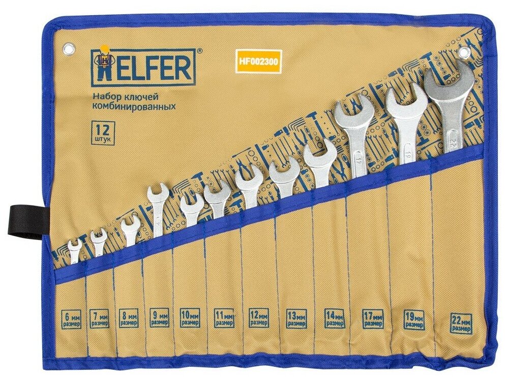 Набор ключей комбинированных 12 пр. 6-14,17,19, 22 мм сумка HELFER KRAFT HF002300 | цена за 1 шт информация: