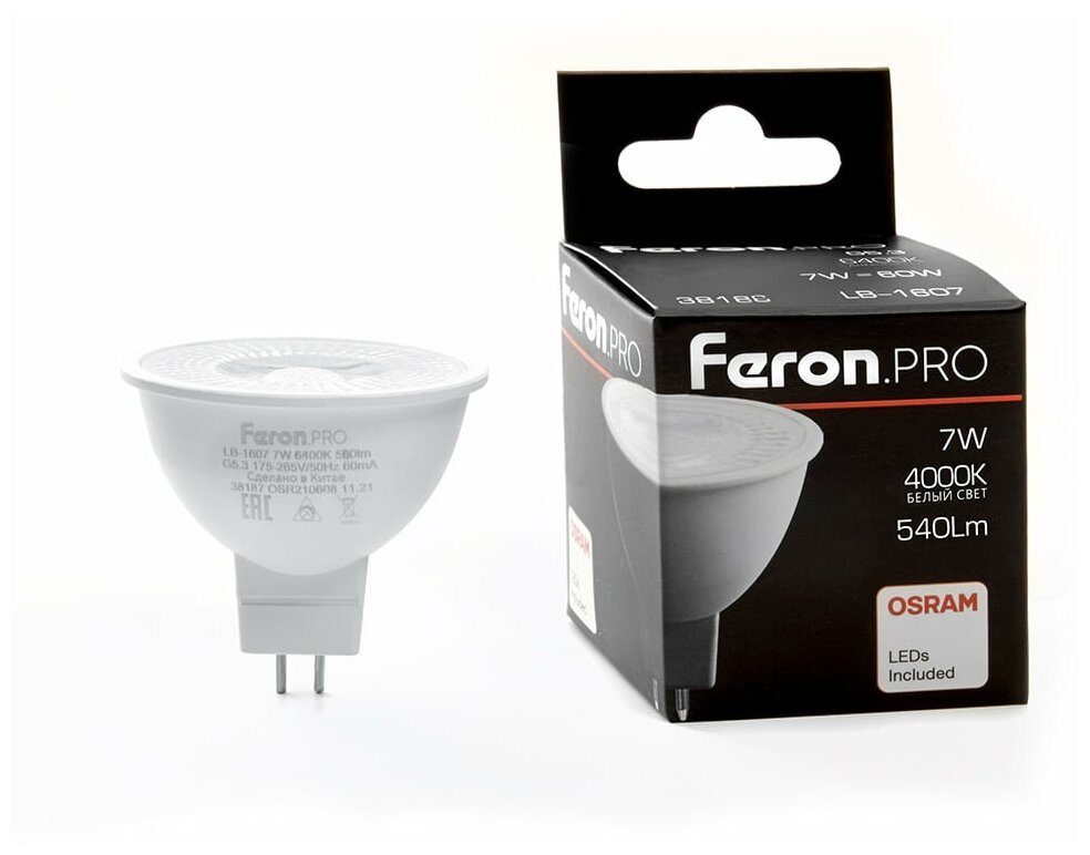 Лампа светодиодная .PRO LB-1607 G5.3 7W 4000K, FERON 38186 (1 шт.) информация: