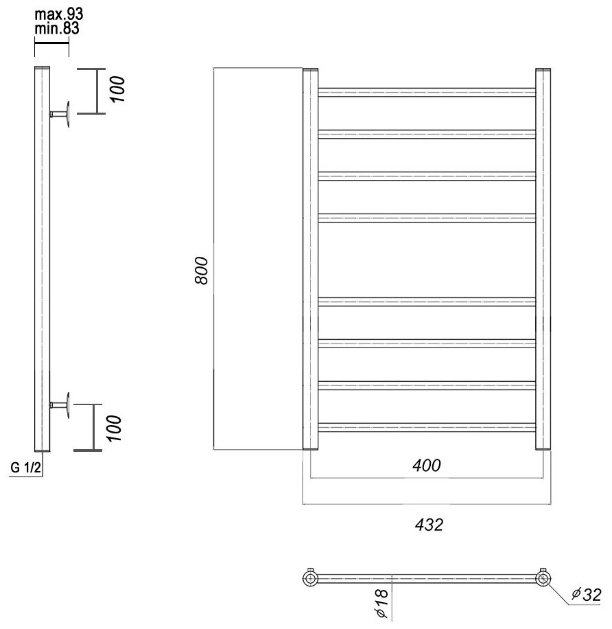 Водяной полотенцесушитель Domoterm Медея П8 400x800, xром информация: