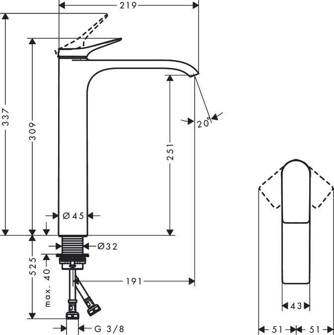 Смеситель для раковины 250 Hansgrohe Vivenis 75042700 без донного клапана