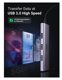 Адаптер UGREEN CM512 (15598) USB-C To 3*USB 3.0 A+HDMI+RJ45+PD Converter - Gray