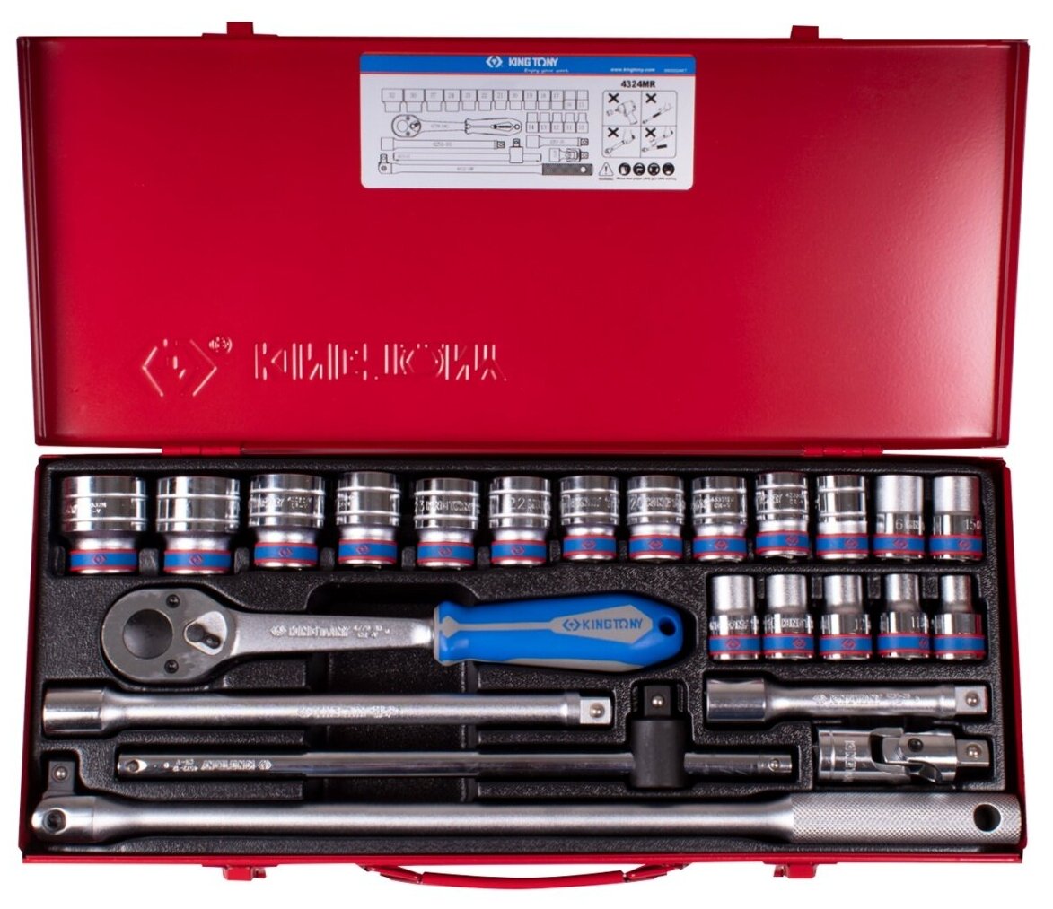 4324MR KING TONY Набор торцевых головок с принадлежностями 1/2", шестигранные, 10-32 мм, 24 предмета 4324MR информация: