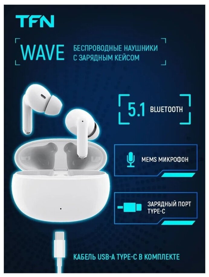 Беспроводные BLUETOOTH наушники TFN WAVE, белый TFN-HS-TWS029WH информация: