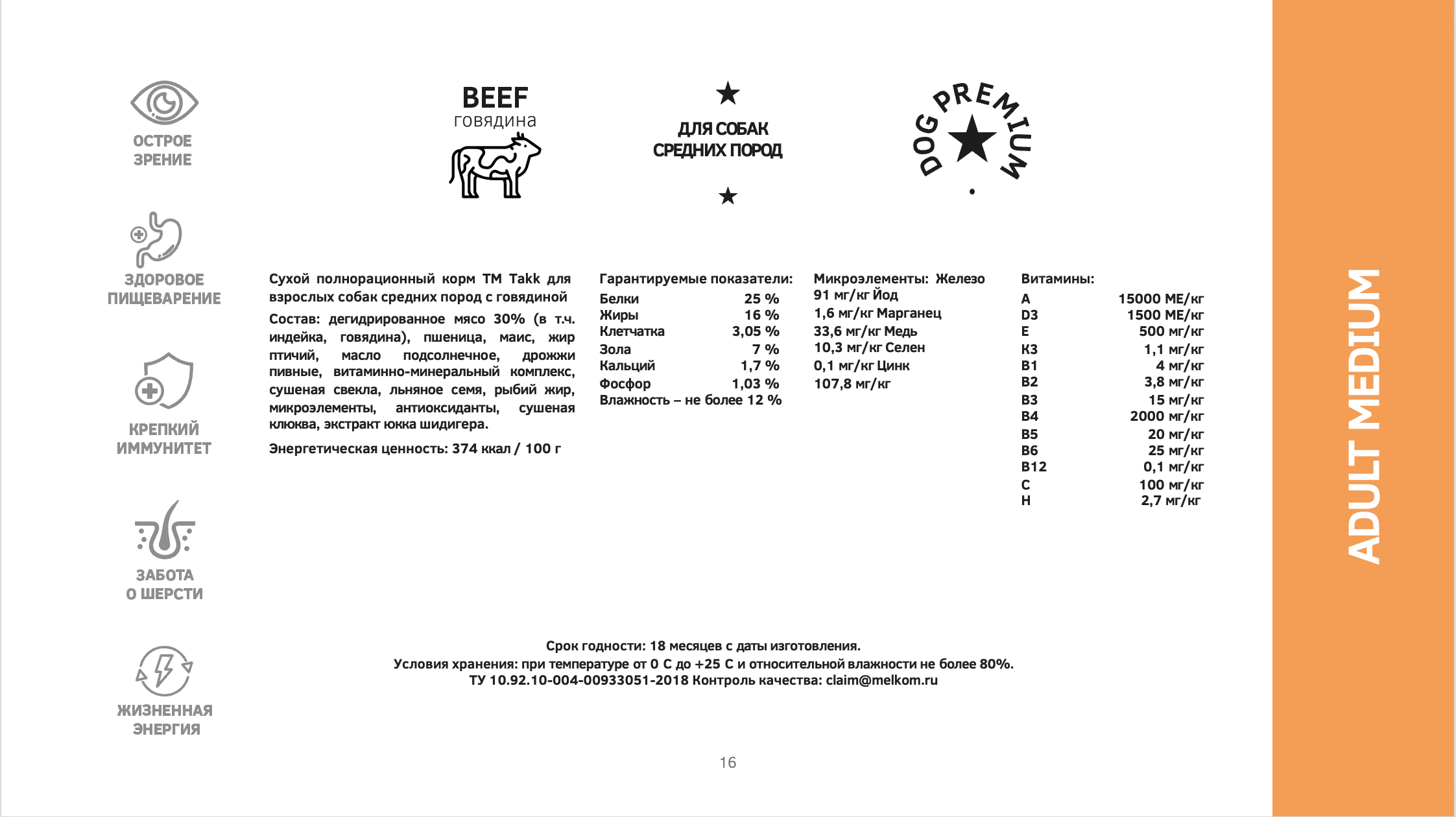 TAKK DOG ADULT MEDIUM BEEF для взрослых собак средних пород с говядиной (2 кг) информация: