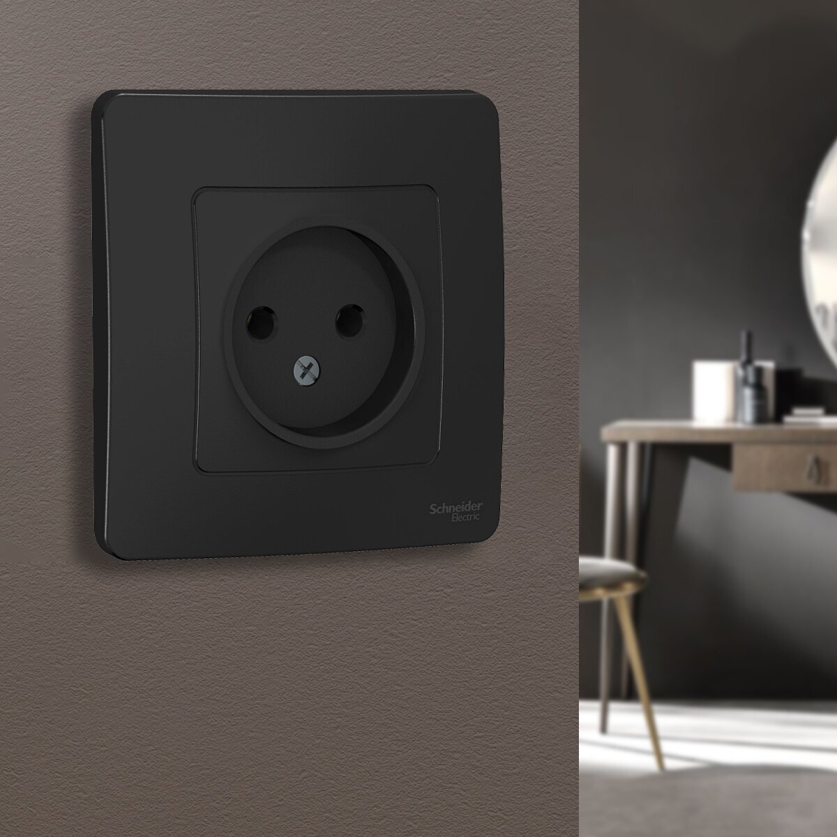 Отзывы на Systeme Electric Розетка 1-м СП Blanca 16А IP20 250В без заземл. без защ. шторок антрацит SE BLNRS000016