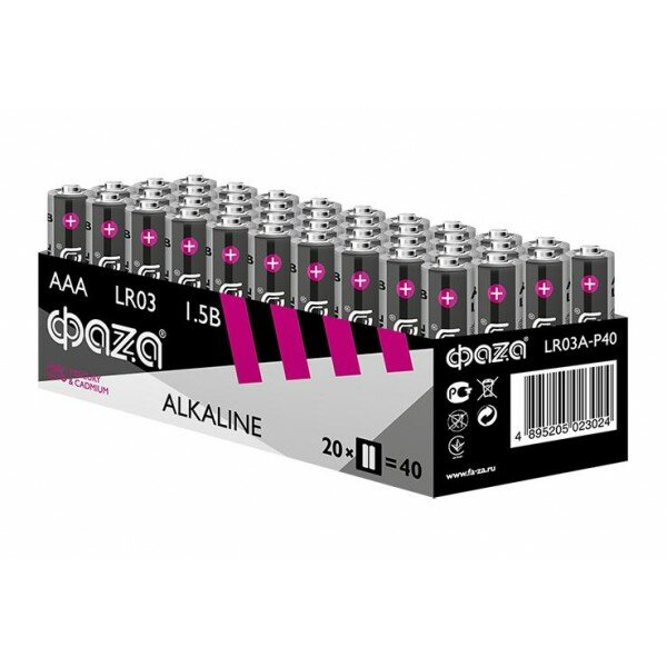 Отзывы на Батарейка, элемент питания щелочной AAA/LR03 1.5В Alkaline Pack-40 ФАZА, JAZZWAY 5023024 (1 упак)