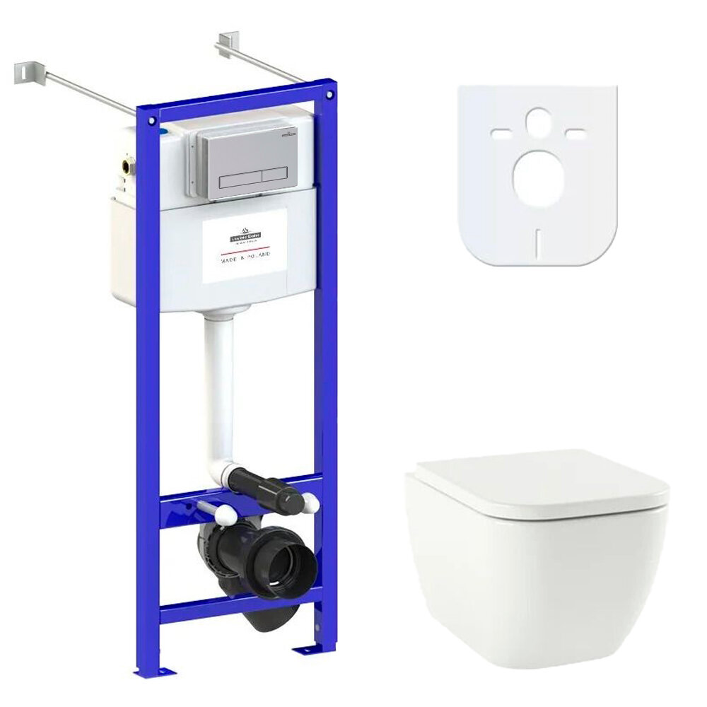 Комплект 7 в 1 Lavinia Boho Aveo Rimless 75110271, безободковый унитаз, сиденье микролифт, инсталляция, крепление, клавиша смыва, шумоизоляция, диспенсер