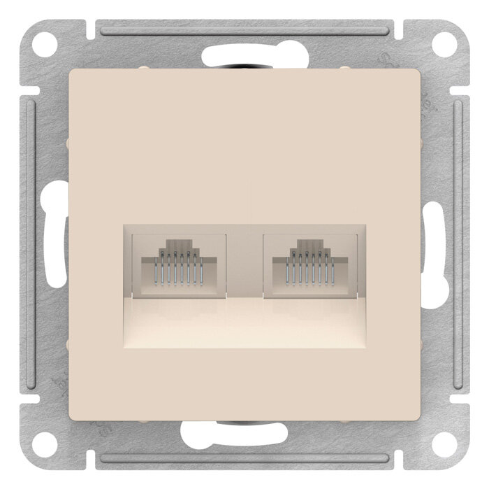 2-местный механизм розетки компьютерной Schneider Electric AtlasDesign RJ45 + RJ45 категории 5e бежевый ATN000285 1 561 ₽