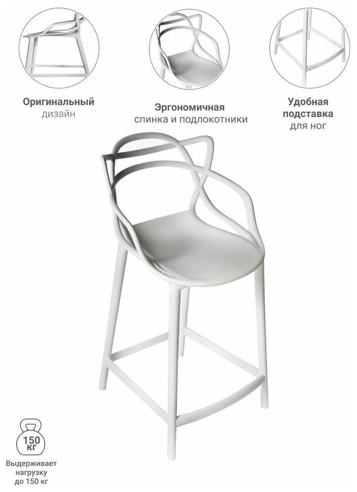 Комплект из 2-х стульев полубарных Masters белый / Стулья пластиковые / Барный стул / Стул кухонный / Стулья для бара / Мебель для дачи и сада