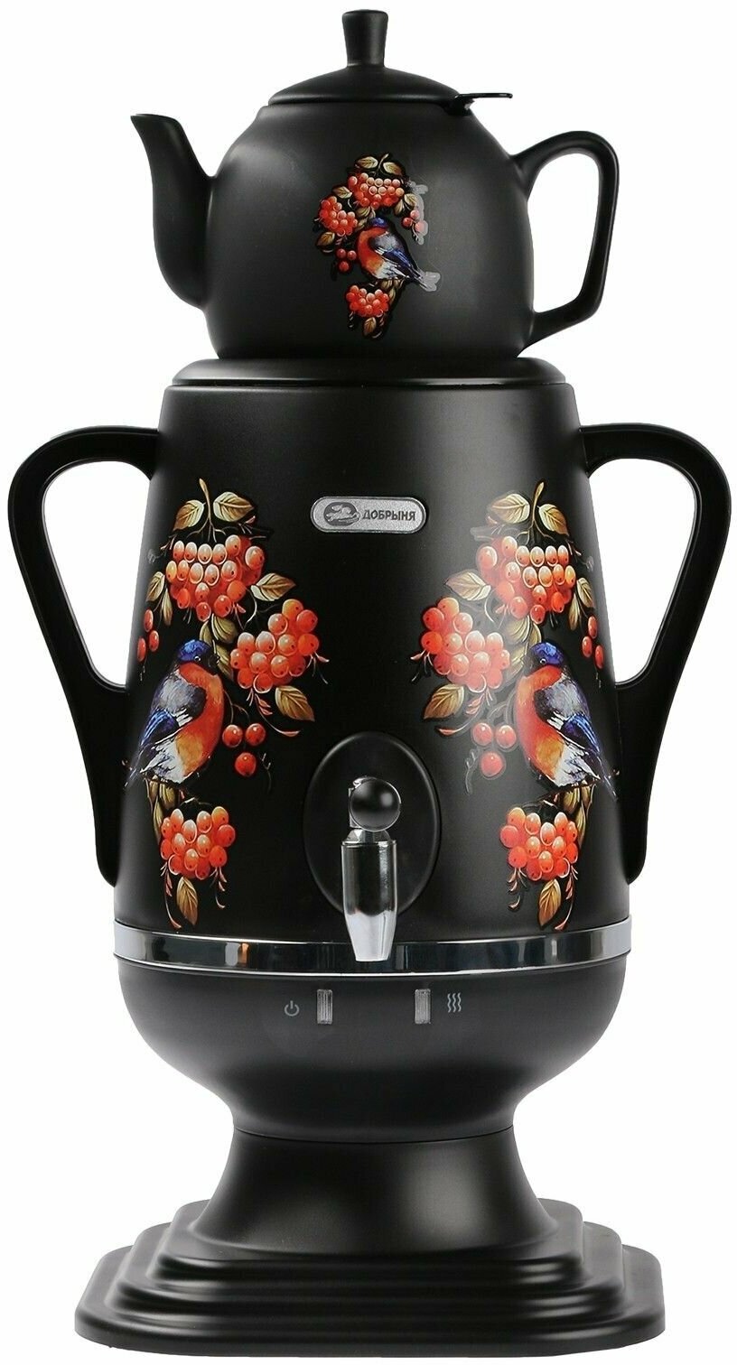 Самовар эл. пластик добрыня DO-432 черный ''Снегирь на чёрном''