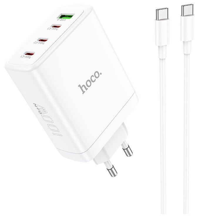 Сетевое зарядное устройство Hoco N31 Leader, USB + 3×USB Type-C, GAN PD100W, QC 3.0 + кабель USB Type-C - USB Type-C, белый