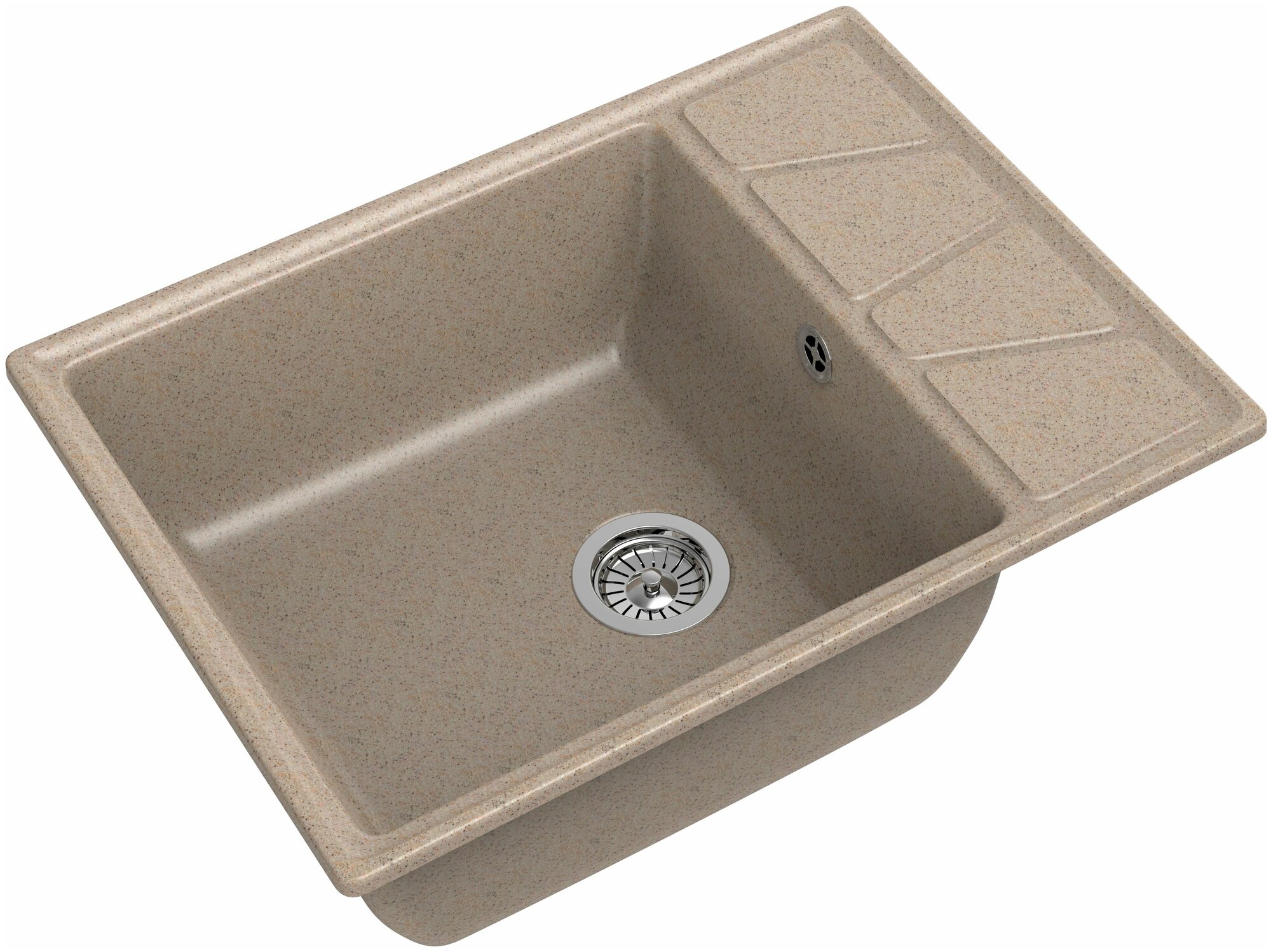 Кухонная мойка GRANFEST мрамор VERTEX GF-V-680L песочный, врезная + сливная арматура/Раковина для кухни