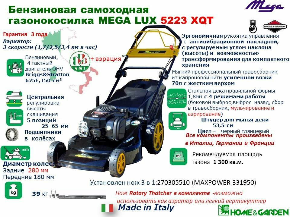 Газонокосилки бензиновые Mega Pro LUX 5223 XQT информация: