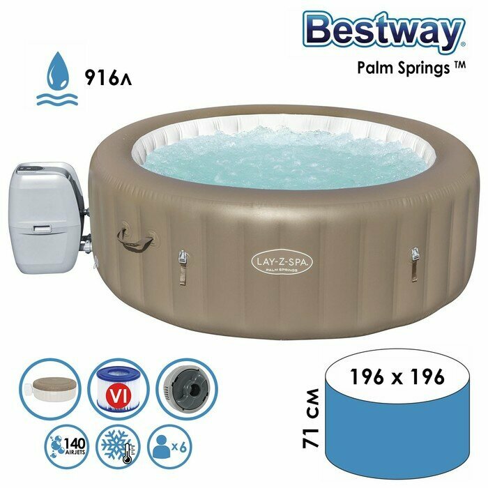 Bestway SPA бассейн Palm Springs AirJet, фильтр-насос, тент, дозатор для химии, 196 х 71 см, аэромассаж, 60017 Bestway информация: