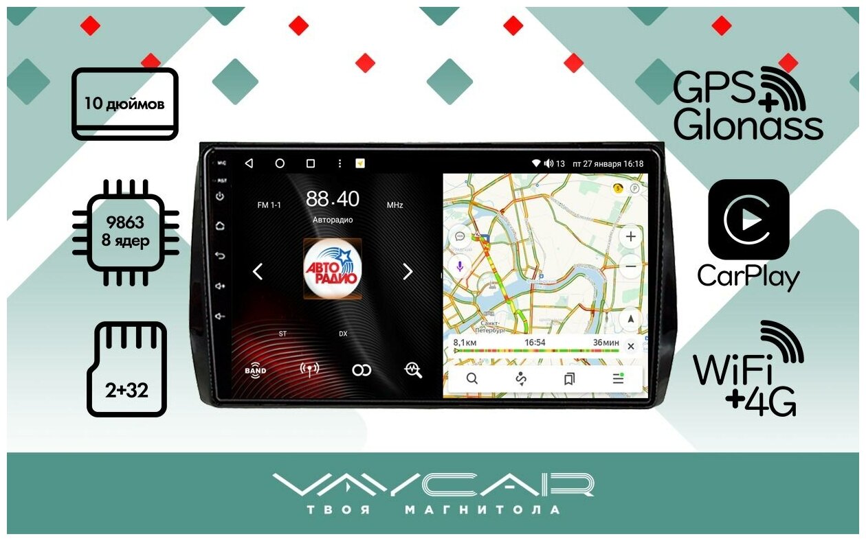 Магнитола Vaycar 10V2 для SKODA Kodiaq, Karoq (Андроид, 2+32, 8 ядер, WiFi, BT, 4G, GPS, QLED 10")