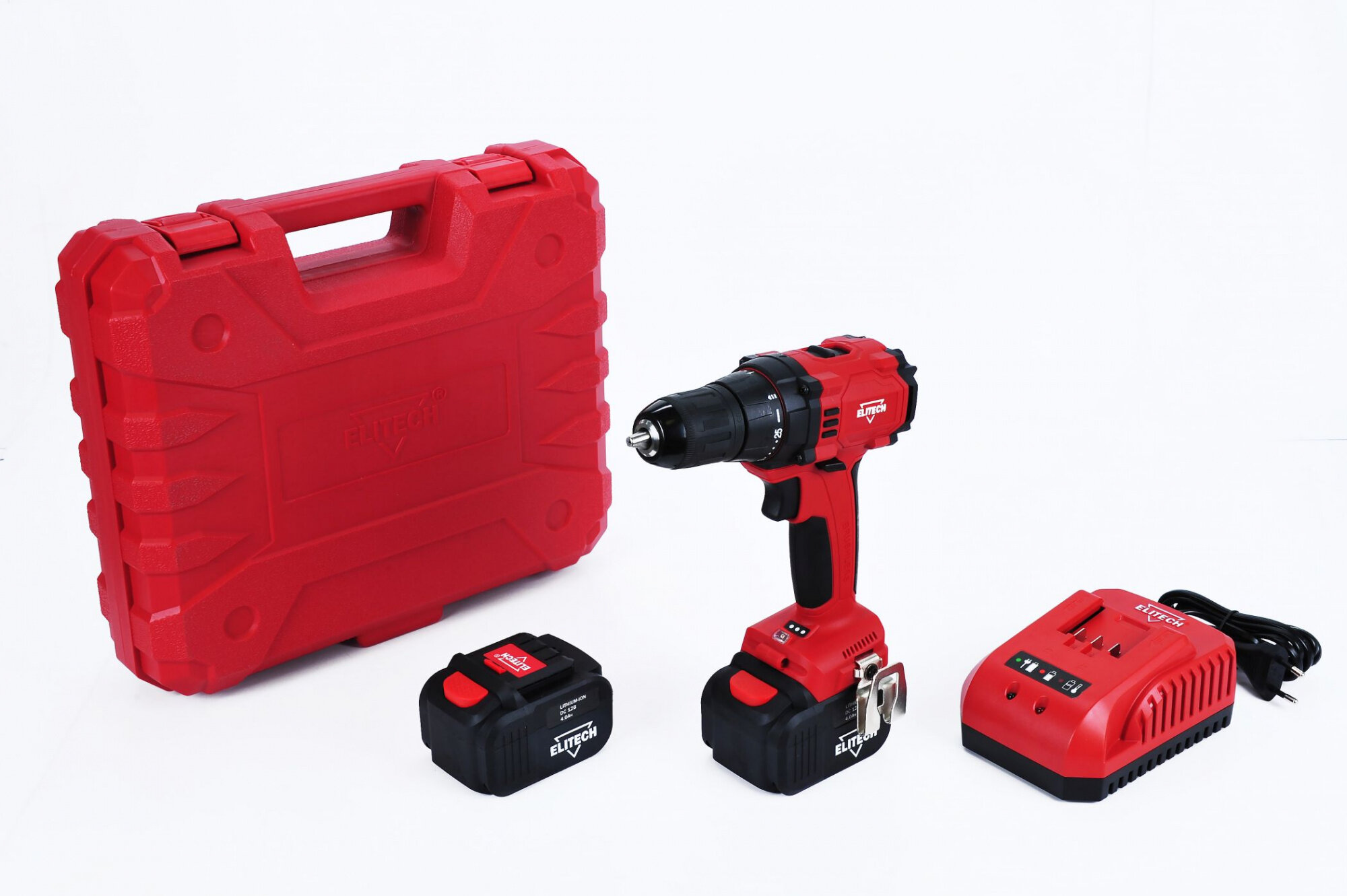 10 цен на Дрель-шуруповерт Elitech ДА 12БЛ2 (Е2201.001.02) 4Ач, с двумя аккумуляторами [191606]