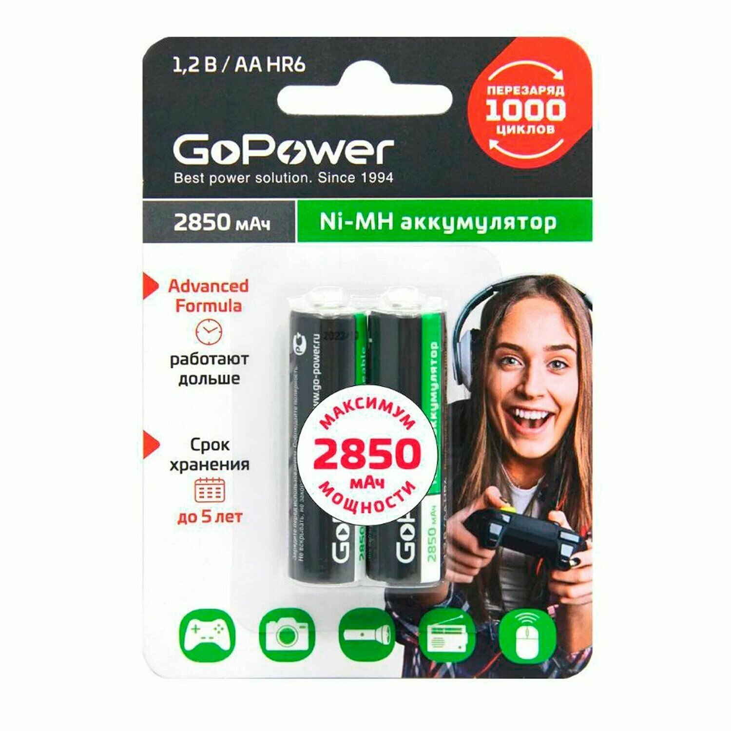 Аккумулятор GoPower HR6 AA BL2 NI-MH 2850mAh, упаковка 2 шт. информация:
