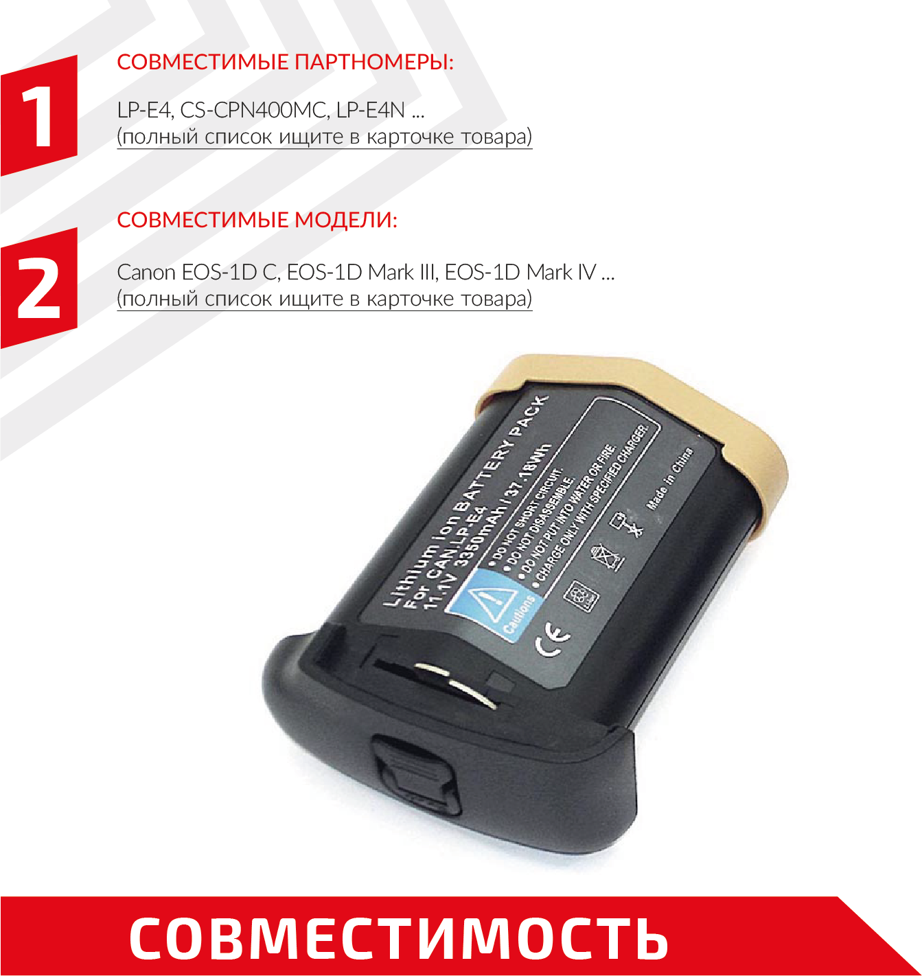| Совместимый аккумулятор | LP-E4 / LP-E4N / PL724B.806 |